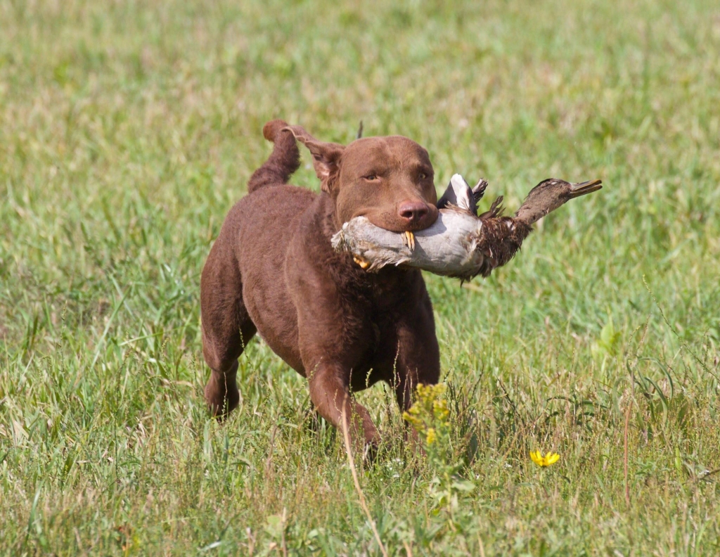 DEACON is 25" 95lbs. Dark Brown Powerful dog with a good coat and good balanced angles. Pleasing handsome head. Trained by Molly Boland to his MH title. Deacon is hunted by his owner Derrick March on the Eastern Shore of MD every Fall. Hunts upland too. While at home he enjoys swimming in the pool with his two boys.